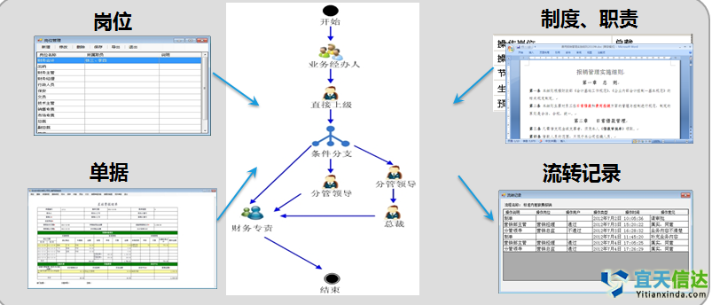 通過流程管理平臺(tái),實(shí)現(xiàn)以業(yè)務(wù)流程為主線,將制度、崗位、職責(zé)、單據(jù)等管理