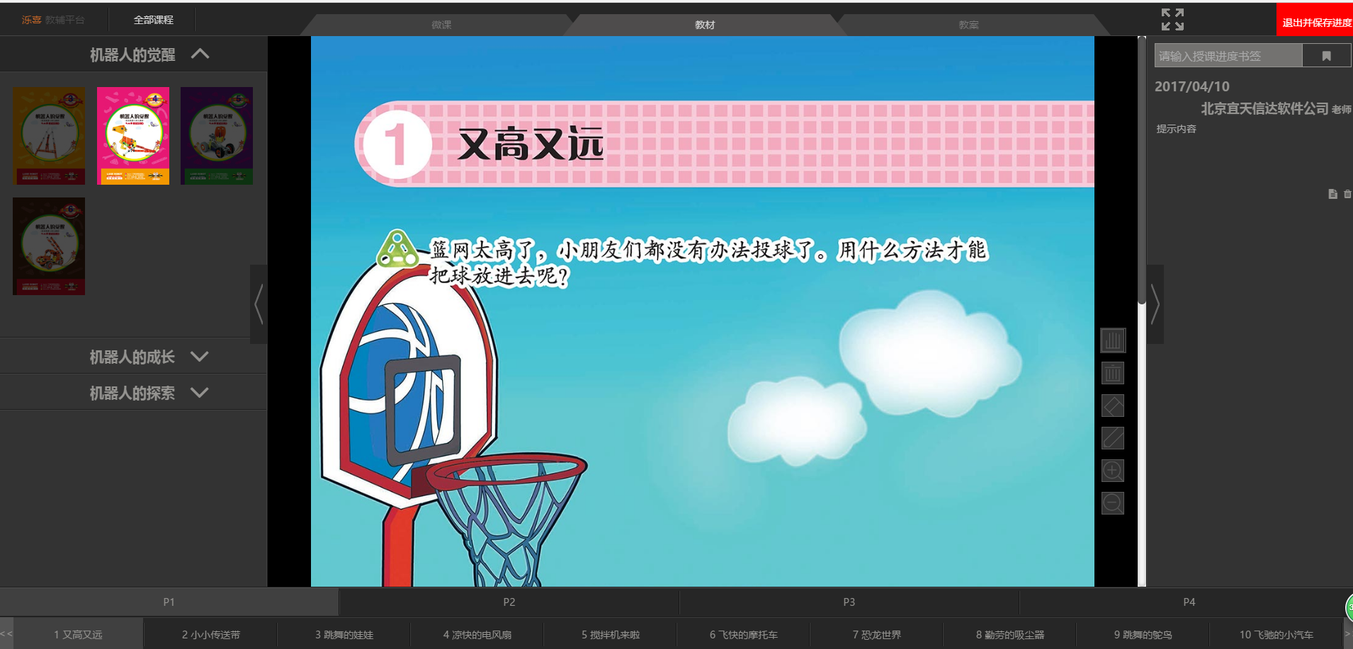成果摘要:北京軟件公司 宜天信達(dá)與北京濼喜教育科技有限公司合作開發(fā)-獨(dú)創(chuàng)性數(shù)媒教輔平臺,有效解決創(chuàng)客教育個(gè)性化教學(xué)的難題。 通過標(biāo)簽卡的選擇,可以進(jìn)行微課、教材及教案間的切換。