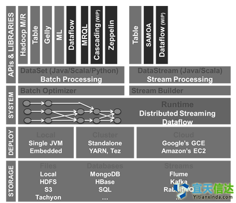 GMTC全球移動(dòng)技術(shù)大會(huì)2016年6月24日-25日,北京,點(diǎn)擊了解詳情!Samza的代碼可作為Yarn作業(yè)運(yùn)行,還可以實(shí)施StreamTask接口,借此定義process()調(diào)用。StreamTask可以在任務(wù)實(shí)例內(nèi)部運(yùn)行,其本身也位于一個(gè)Yarn容器內(nèi)。詳細(xì)了解Cloud Dataflow:Dataflow是一種原生的Google Cloud數(shù)據(jù)處理服務(wù),是一種構(gòu)建、管理和優(yōu)化復(fù)雜數(shù)據(jù)流水線的方法,用于構(gòu)建移動(dòng)應(yīng)用,調(diào)試、追蹤和監(jiān)控產(chǎn)品級(jí)云應(yīng)用。它采用了Google內(nèi)部的技術(shù)Flume和MillWhell,其中Flume用于數(shù)據(jù)的高效并行化處理,而MillWhell則用于互聯(lián)網(wǎng)級(jí)別的帶有很好容錯(cuò)機(jī)制的流處理。該技術(shù)提供了簡(jiǎn)單的編程模型,可用于批處理和流式數(shù)據(jù)的處理任務(wù)。該技術(shù)提供的數(shù)據(jù)流管理服務(wù)可控制數(shù)據(jù)處理作業(yè)的執(zhí)行,數(shù)據(jù)處理作業(yè)可使用Data Flow SDK(Apache Beam)創(chuàng)建。