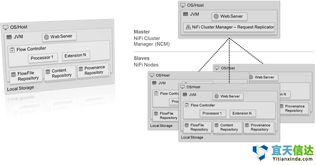 該技術(shù)還提供了其他實(shí)用功能,例如實(shí)時(shí)節(jié)點(diǎn)、歷史節(jié)點(diǎn)、Broker節(jié)點(diǎn)、Coordinator節(jié)點(diǎn)、使用基于JSON查詢(xún)語(yǔ)言的索引服務(wù)。了解詳情Apache NiFi:Apache NiFi是一套強(qiáng)大可靠的數(shù)據(jù)處理和分發(fā)系統(tǒng),可用于對(duì)數(shù)據(jù)的流轉(zhuǎn)和轉(zhuǎn)換創(chuàng)建有向圖。借助該系統(tǒng)可以用圖形界面創(chuàng)建、監(jiān)視、控制數(shù)據(jù)流,有豐富的配置選項(xiàng)可供使用,可在運(yùn)行時(shí)修改數(shù)據(jù)流,動(dòng)態(tài)創(chuàng)建數(shù)據(jù)分區(qū)。此外還可以對(duì)數(shù)據(jù)在整個(gè)系統(tǒng)內(nèi)的流動(dòng)進(jìn)行數(shù)據(jù)起源跟蹤。通過(guò)開(kāi)發(fā)自定義組件,還可輕松對(duì)其進(jìn)行擴(kuò)展。(點(diǎn)擊放大圖像)