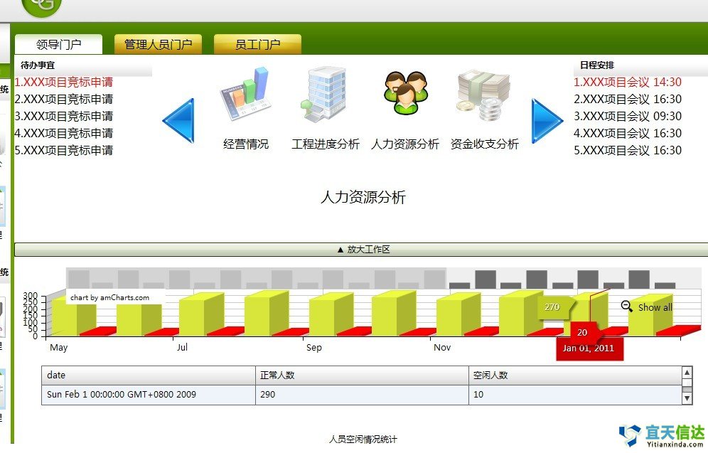 工作計(jì)劃管理可針對(duì)整個(gè)組織機(jī)構(gòu)、部門(mén)或具體的工程項(xiàng)目進(jìn)行管理。管理人員可以使用本功能制訂整個(gè)機(jī)構(gòu)工作計(jì)劃、部門(mén)工作計(jì)劃或項(xiàng)目工作計(jì)劃,同時(shí)將這些計(jì)劃分解到具體的執(zhí)行人員;并可以隨時(shí)檢查計(jì)劃的執(zhí)行情況。員工根據(jù)分配到的工作計(jì)劃,可以定期上傳相應(yīng)的工作報(bào)告,填寫(xiě)工作日志,同時(shí)可以上傳相應(yīng)的附件。
